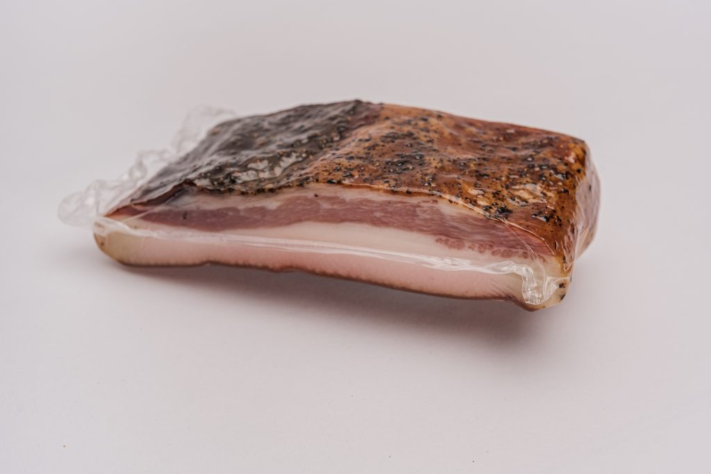 Pancetta pezzi da g. 150 – 250 ca. € 21,66/kg.